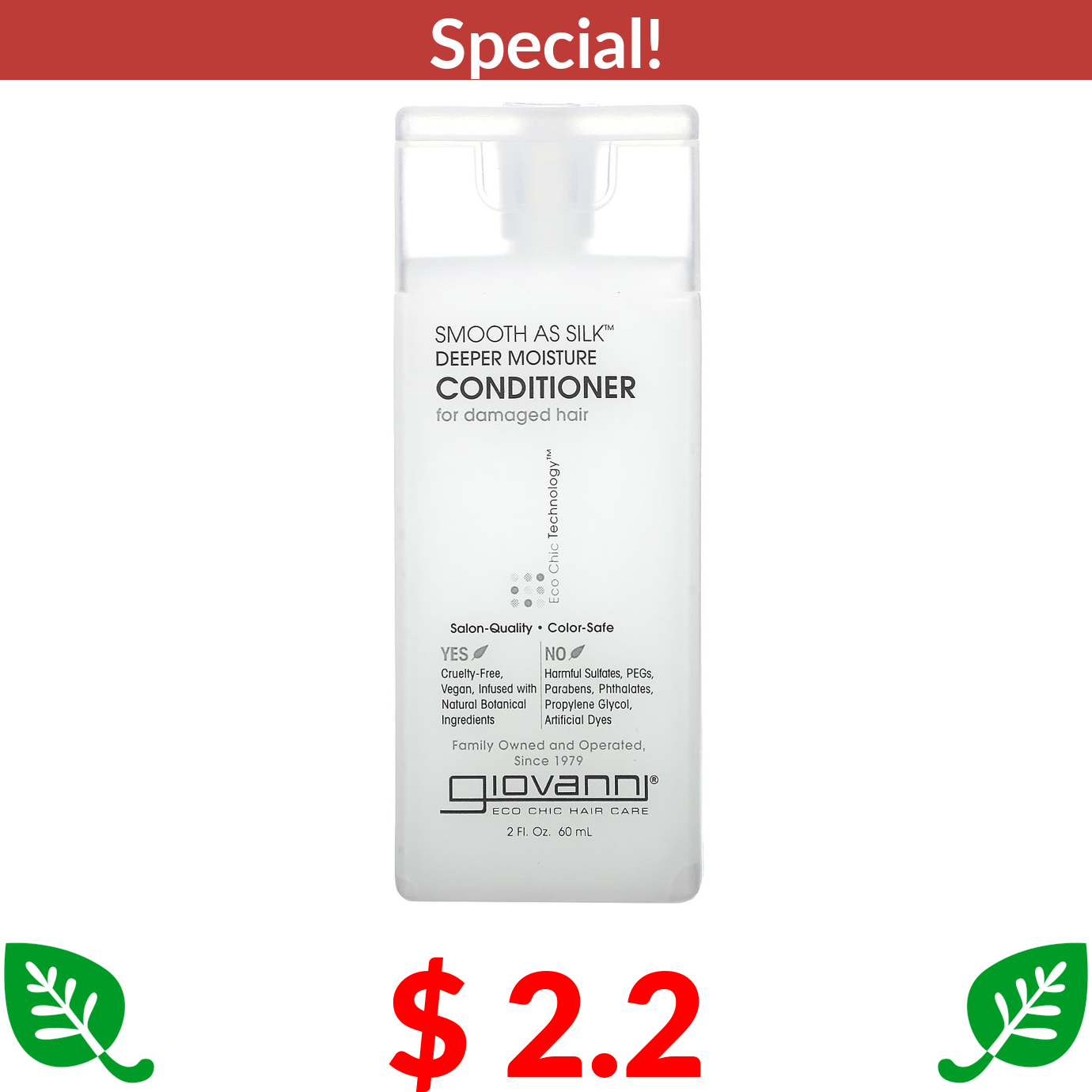 $ 2.2 Giovanni, Smooth As Silk, Deeper Moisture Conditioner, For Damaged Hair, 2 fl oz (60 ml)