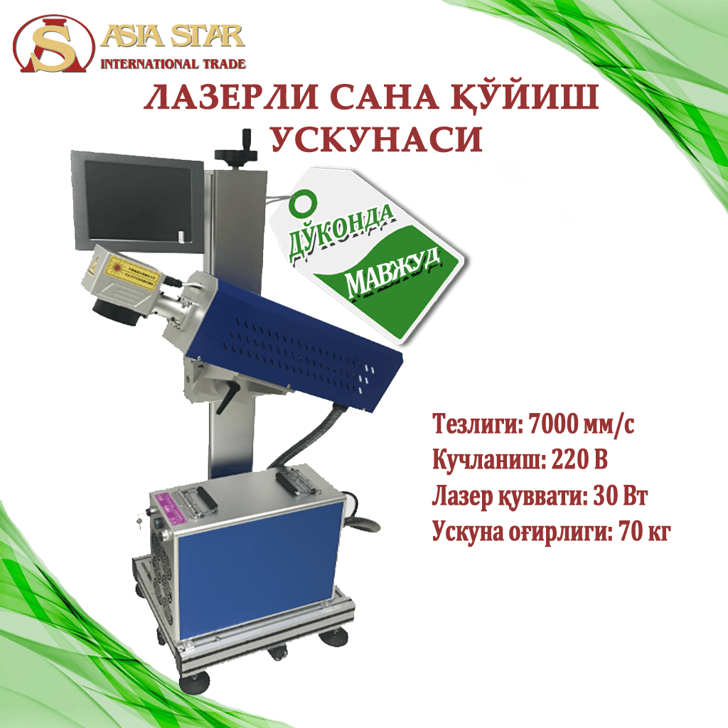 ТАЙЁР МАҲСУЛОТЛАРНИНГ УСТИГА ИШЛАБ ЧИҚАРИЛГАН САНАНИ ҚЎЙИШ УСКУНАСИ. Ушбу ускуна универсал бўлиб, хар хил турдаги тайёр маҳсулотларнинг устига ишлаб чиқарилган санани қўйиш учун мўлжалланган. Хусусан, ушбу ускуна ёрдамида полиэтилен, қоғоз, алюмин ва бошқа турдаги қадоқларга сана қўйиш мумкин.