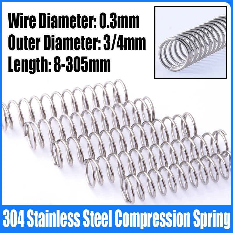 1-20PC 0.3mm Wire Diameter Compression Spring 304 Stainless Steel Pressure Spring Return Spring 3/4mm Outside Diameter L=8-305mm - Купить с бесплатной доставкой