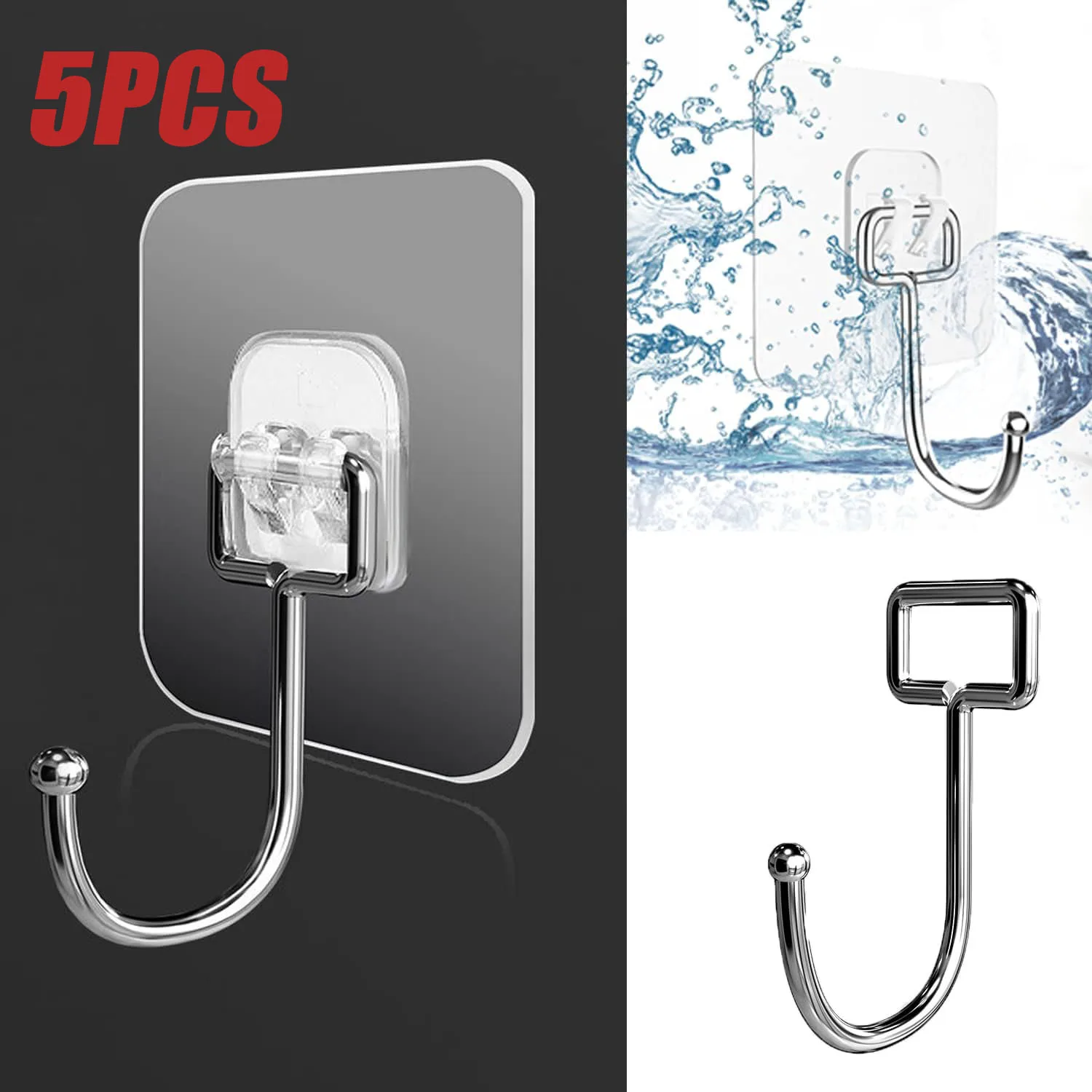 1-5PCS Big Size Hook Self-Adhesive PVC Stainless Steel Transparent Multi-Purpose Wall Holder Door Rack Kitchen Storage Organizer - Купить с бесплатной доставкой
