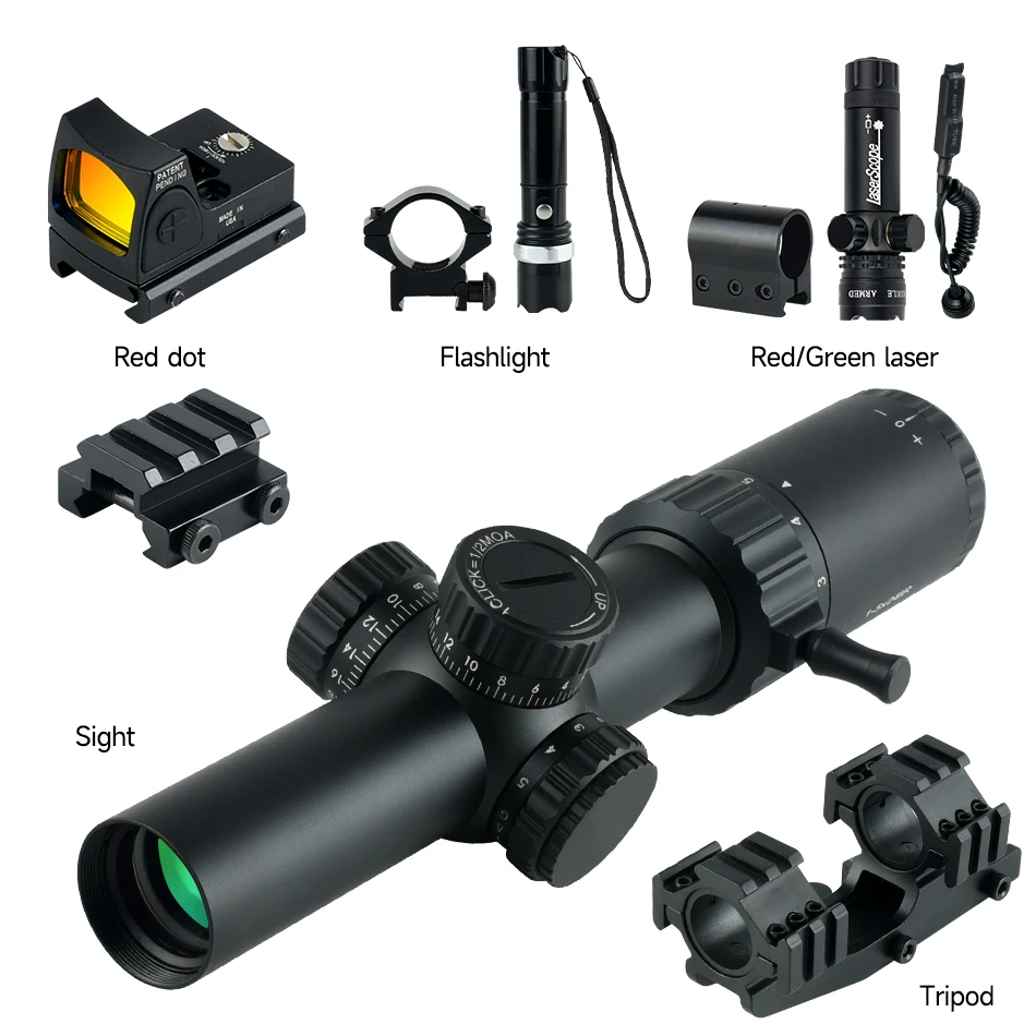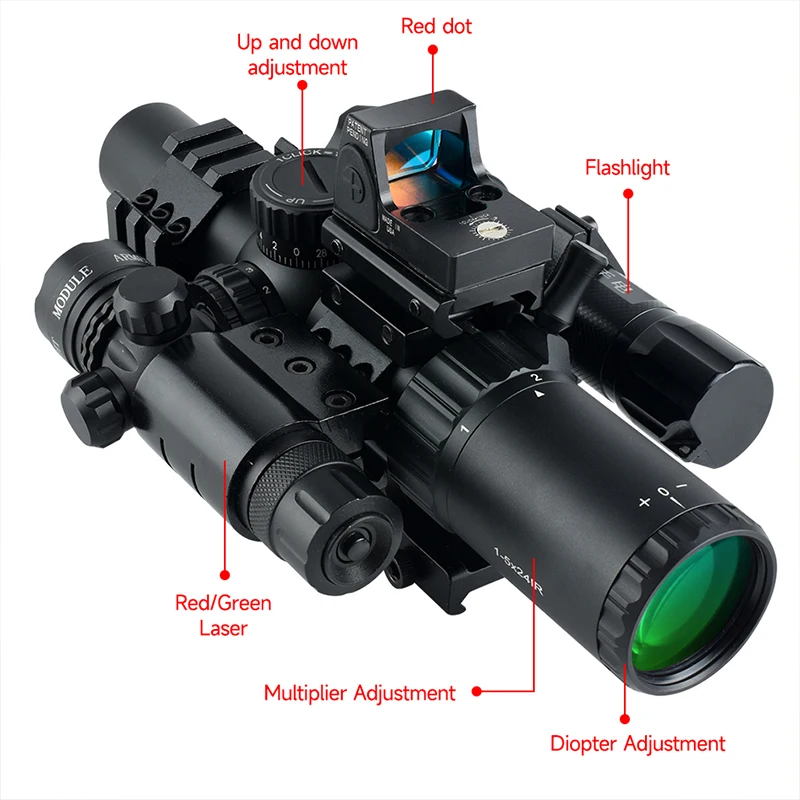 1-5X24 IR Tactical Scope with Laser and Light Rifle Wide Angle Airsoft Riflescope Hunting Optics Shooting Gun RMR Sight for AR - Купить с бесплатной доставкой