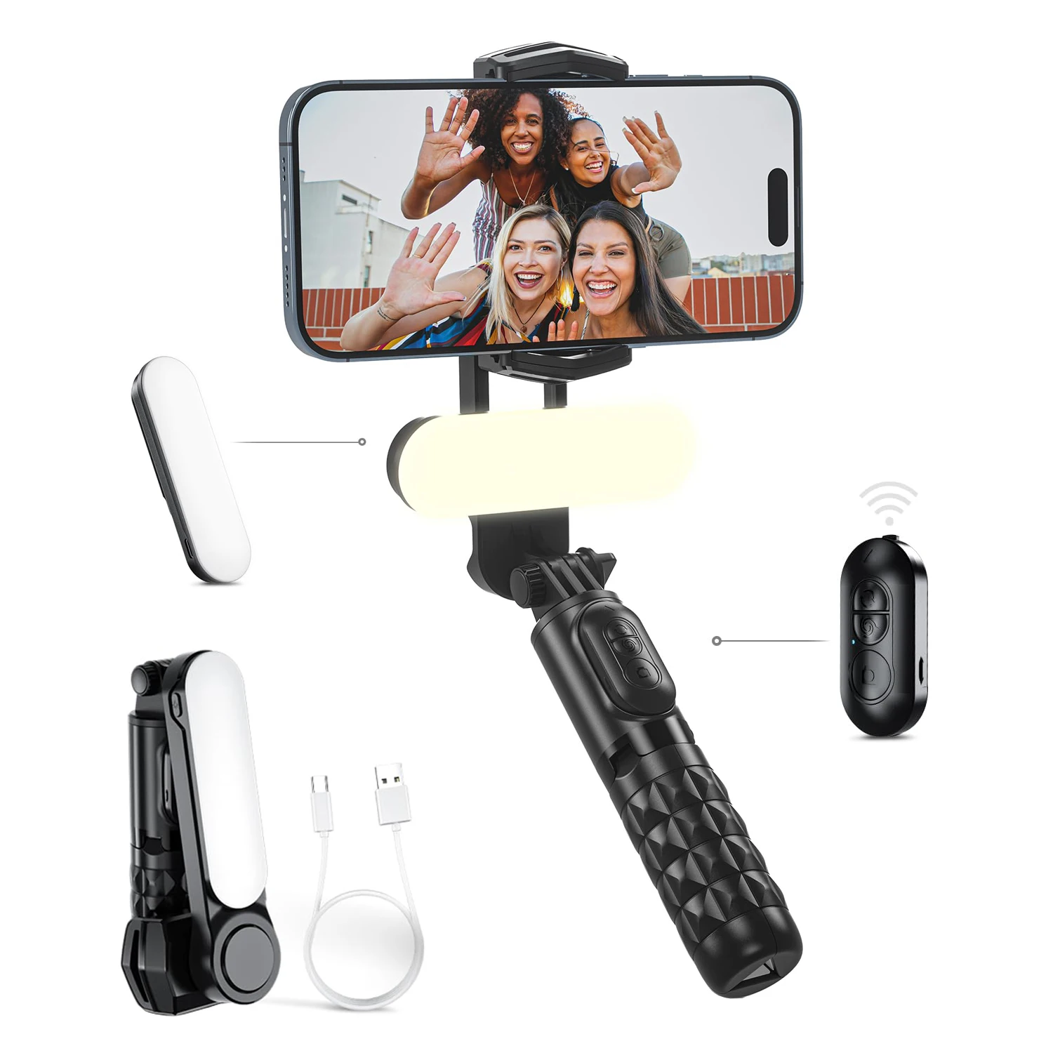 1-Axis Selfie Stick Gimbal Stabilizer with Fill Light 360°Rotation, Gimbal Stabilizer with Wireless Remote for Android & iPhone - Купить с бесплатной доставкой
