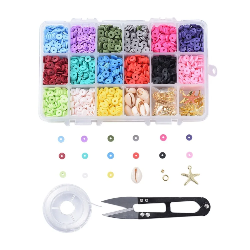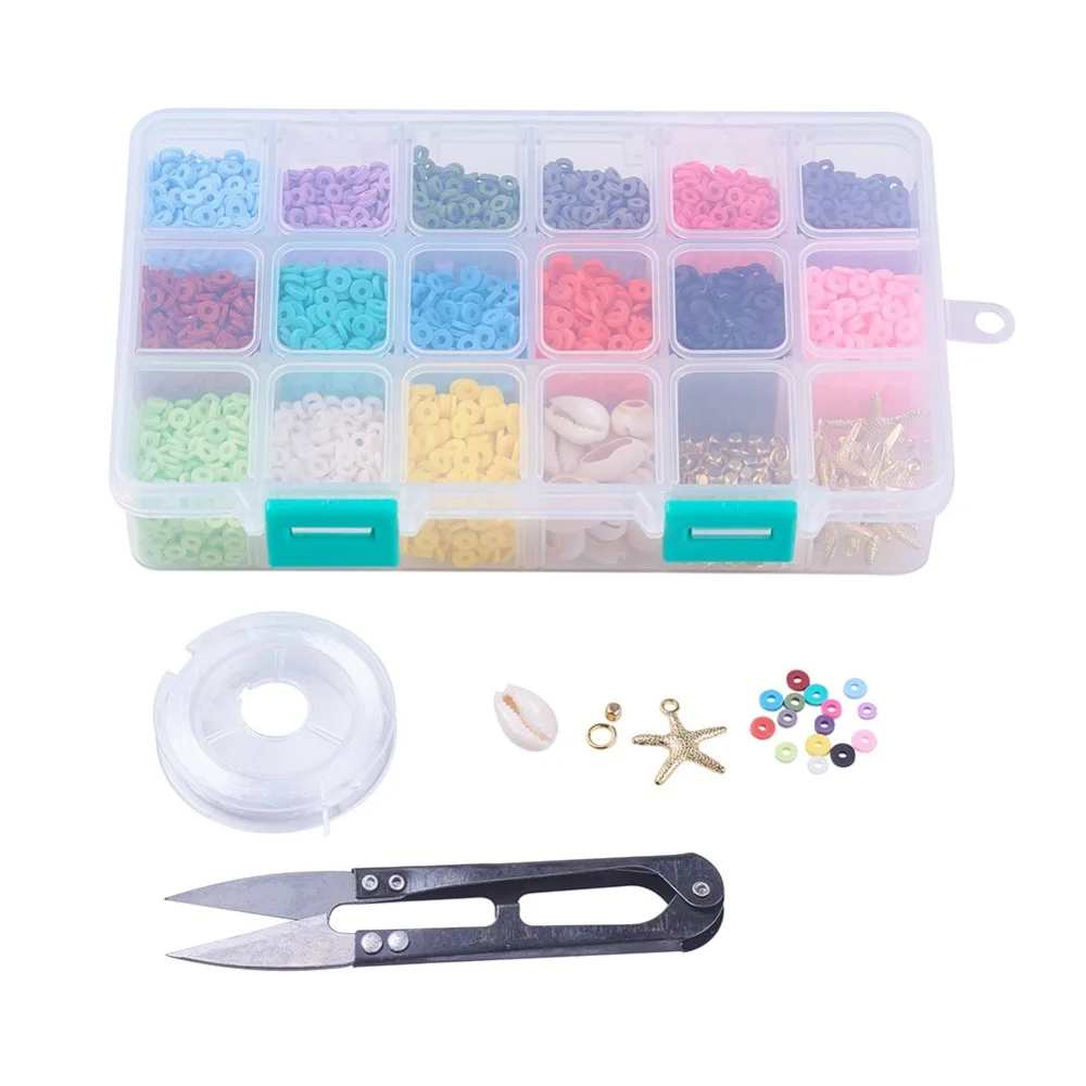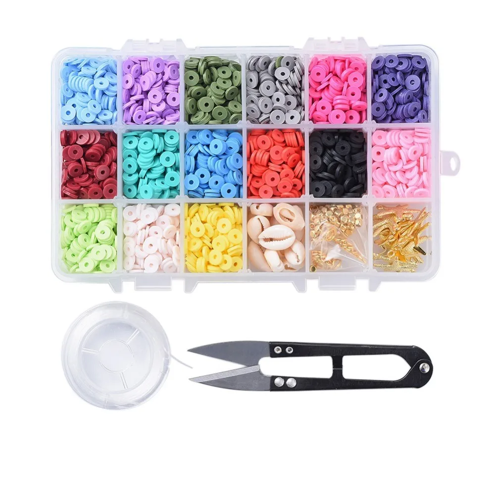 «1 Box 15 Colors Mixed Loose Beads Pendants with Elastic Wire Scissors Jewelry Making Kits Handmade DIY Bracelet Necklace» по лучшей цене на рынке! Всего за 15$ (1425рублей)