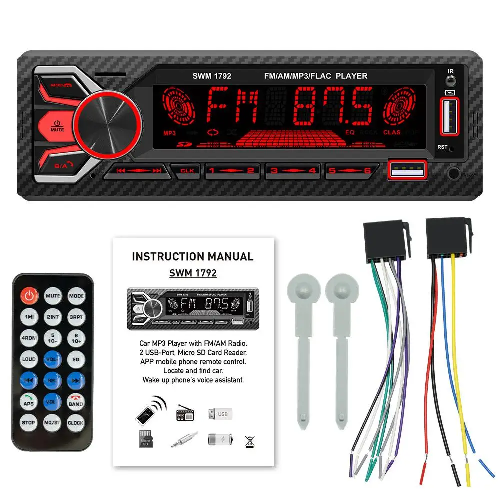 QSuAHcGOHere you can buy 1 Din Car Radio Audio Dual Bluetooth-compatible Lossless Music MP3 Player USB Card Reader With Colorful Light with free delivery to your post office.