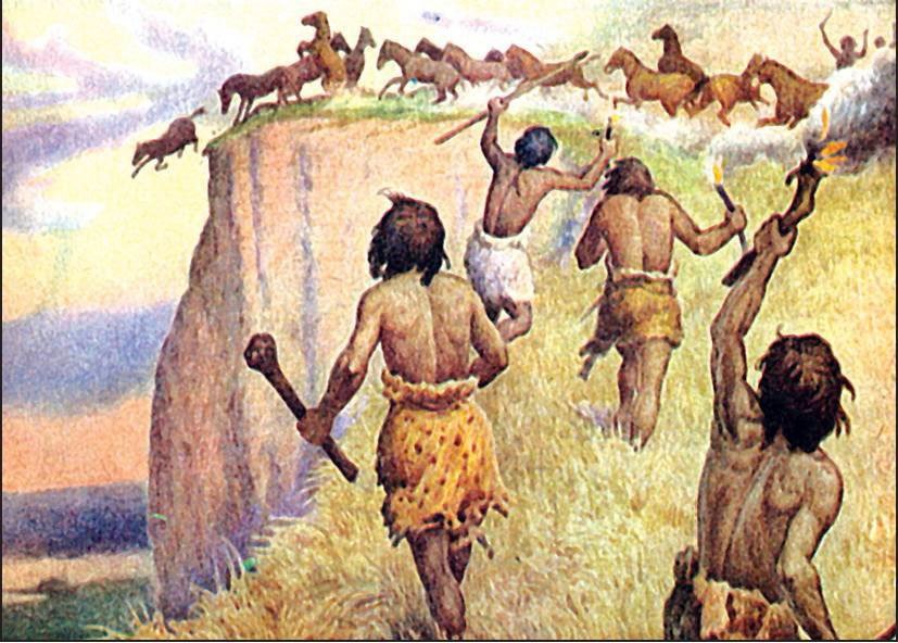 Охота и собирательство. Древние люди добывали себе пропитание охотой и собирательством. В густых лесах они себя чувствовали неуютно. Местом их первоначального обитания были саванны и степи, природа которых характерна тем, что растут там преимущественно травы, а обитают травоядные копытные животные, способные дать большое количество мяса. Таких животных в древних саваннах и степях было много, поэтому первые охотники жили в изобилии, если не сталкивались с внезапными изменениями климата.