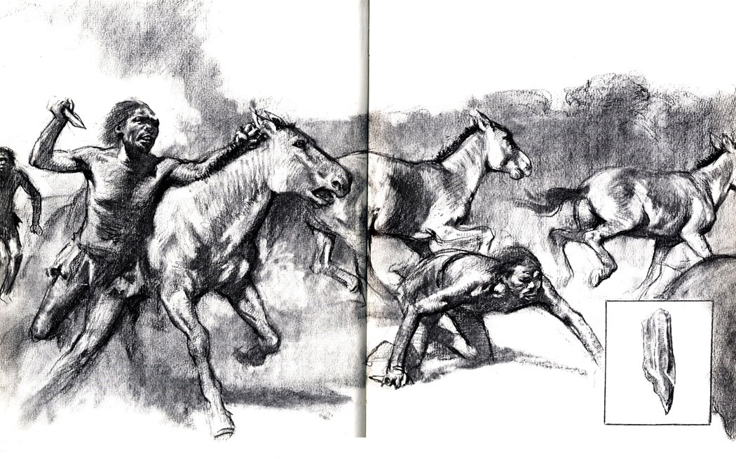 Женщины собирали травы и зерна злаков, на берегах морей – раковины моллюсков. Мужчины охотились. Чаще всего охота была загонной – стада антилоп, оленей, лошадей загоняли к крутому обрыву или в болото, после чего добивали выживших животных. Для загона применялся огонь, которым люди пользовались с древнейших этапов своей истории.