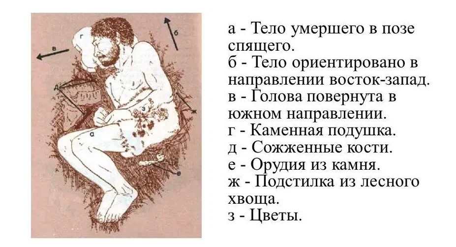 Другой человек из пещеры Шанидар был похоронен на подстилке из вечно зеленой хвои, а его тело было усыпано цветами. Зримое свидетельство того, что люди отрицали смерть как нечто должное и мечтали о вечной и лучшей жизни для своих соплеменников. К глубокой древности восходят следы духовной жизни и религиозных представлений.