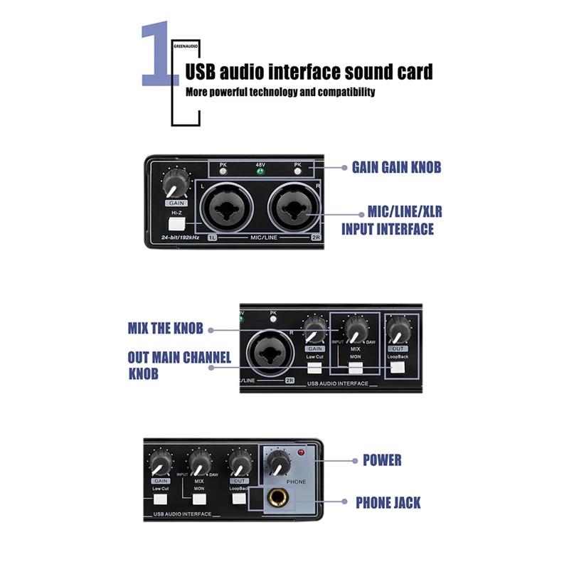 TwoTsnKoHere you can buy 1 PCS Sound Card Studio Record USB Audio Professional Interface Sound Equipment 48V Phantom For Recording Black with free delivery to your post office.