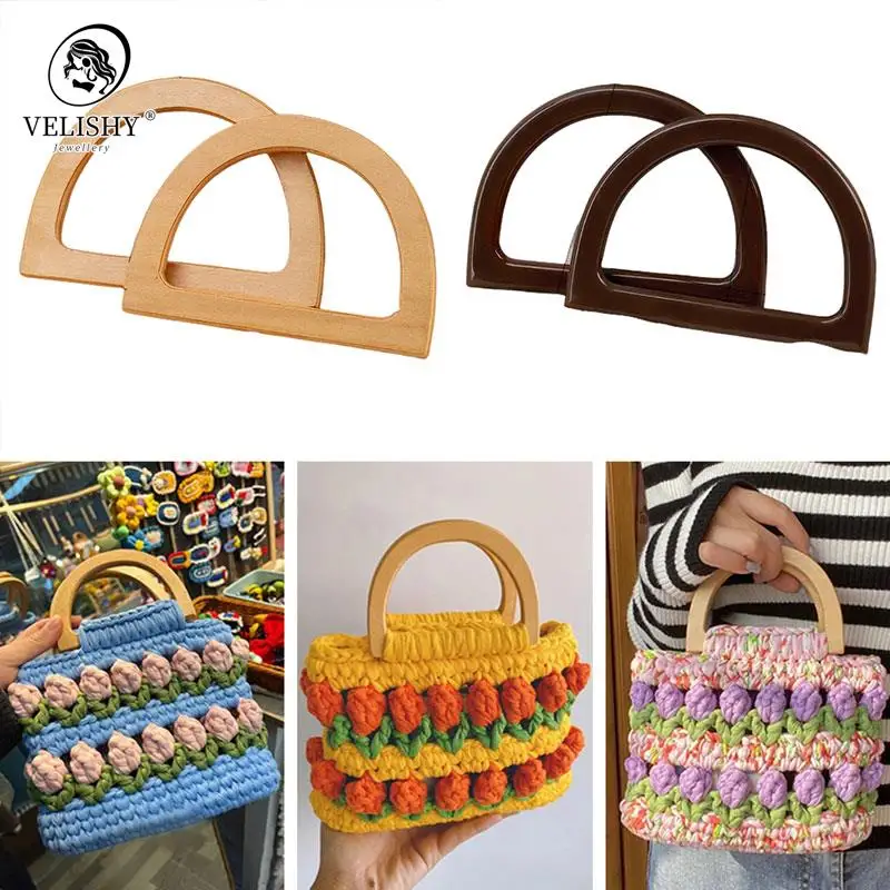 1 Pc Handcrafted Wooden D Shape Handle Classic Round Bag Replacement Decorative Simple Gradient DIY Rectangle Handbag Accessorie - Купить с бесплатной доставкой