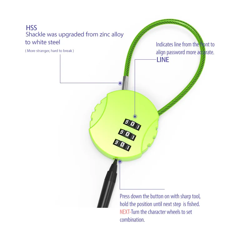 1 Pcs Round Wire Rope Luggage Locks School Bag Backpack Trolley Case Pen Case Mini Code Padlock Safety Traveler Bag - Купить с бесплатной доставкой