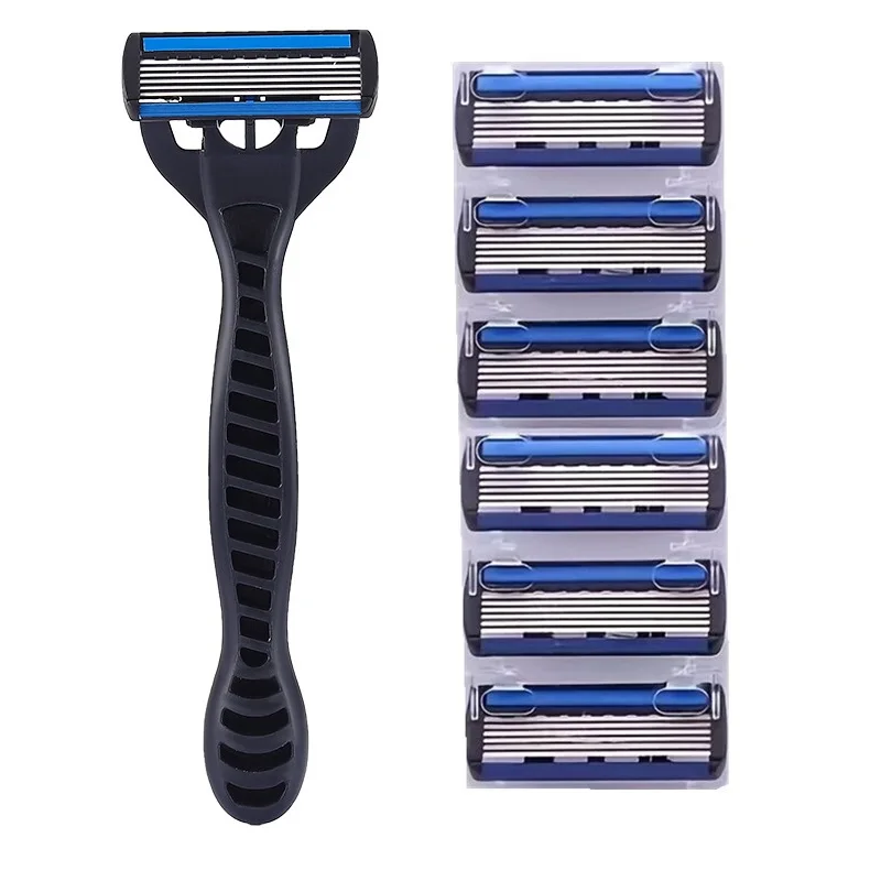 (1 Razor Holder+6 Replacement Heads) 6-Layers Blade Safety Shaver Razor For Men Classical Shaving Razor Body Face Hair Removal - Купить с бесплатной доставкой