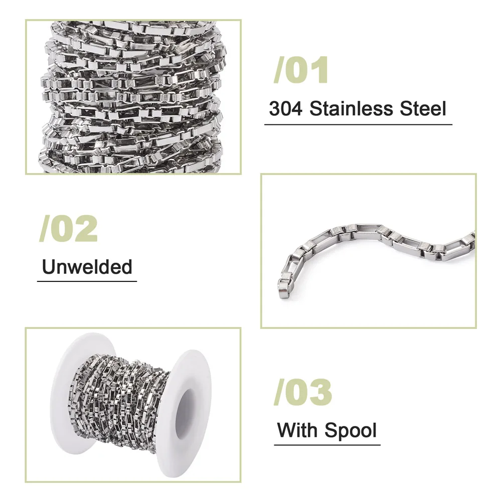 xnAVTsywДолго искали 1 Roll 3mm 304 Stainless Steel Box Chain 2 Colors Unwelded Chain with Spool DIY Necklace Bracelet Jewelry Making about 5m/Roll, но не могли найти? Предоставляем вашему вниманию 1 Roll 3mm 304 Stainless Steel Box Chain 2 Colors Unwelded Chain with Spool DIY Necklace Bracelet Jewelry Making about 5m/Roll по лучшей цене на рынке!