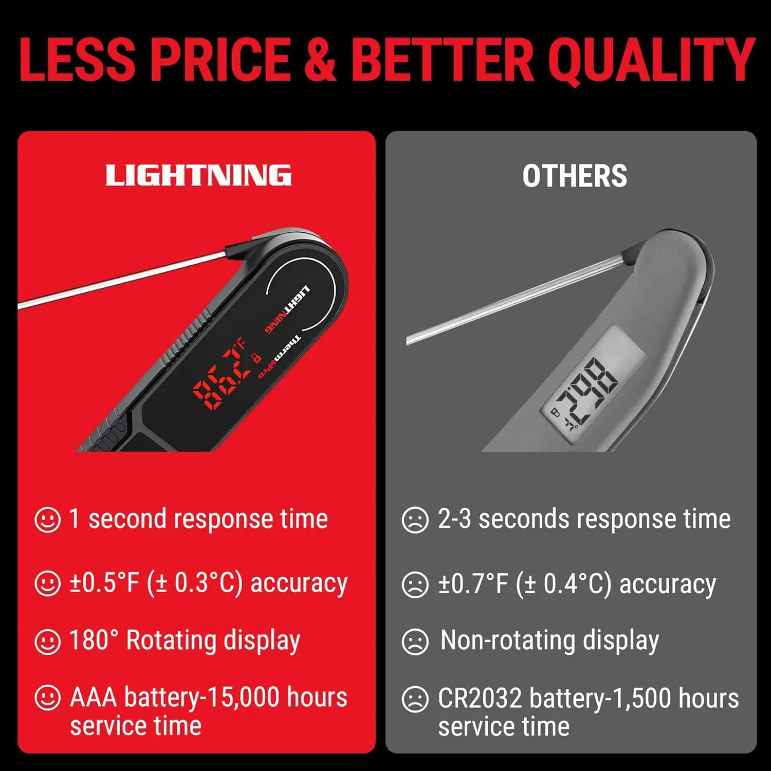 BAlJCtqnCHere you can buy 1-Second Instant Read Meat Thermometer, Calibratable Kitchen Food Thermometer with Ambidextrous Display, Waterproof Cooking Ther with free delivery to your post office.