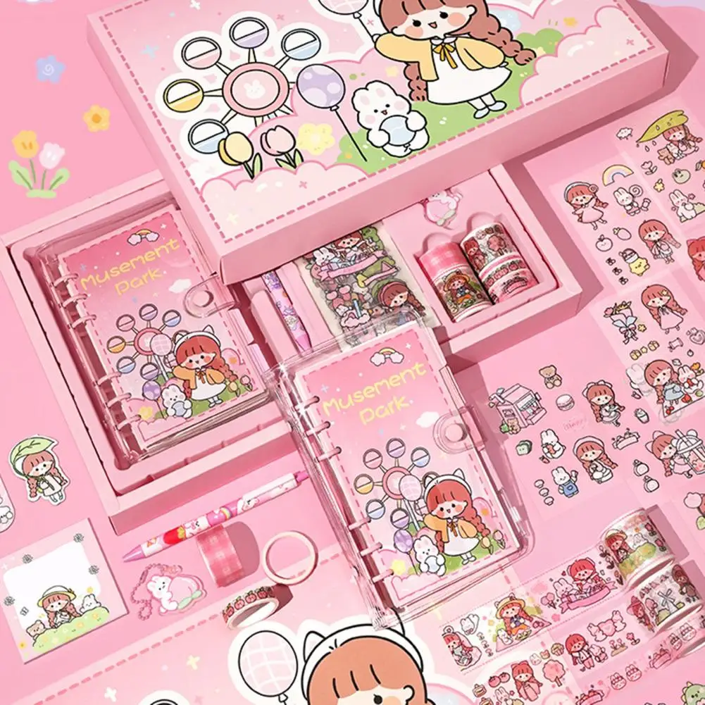 DeTIEFaSvHere you can buy 1 Set Binder Notebook Set Vibrant Color Smooth Writing Note-Taking Cartoon Notebook Hand Account Set Stationery Gift for Kids with free delivery to your post office.