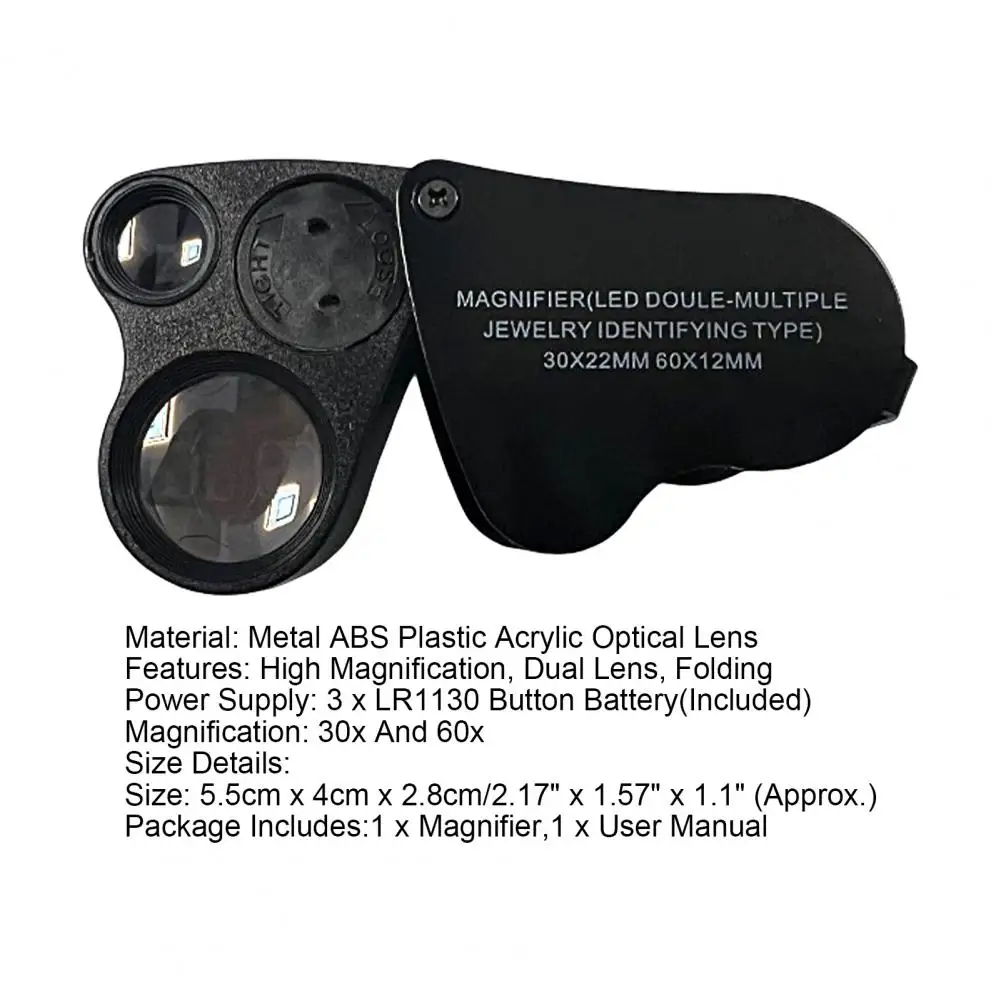 JVgEccMjLMHere you can buy 1 Set LED Magnifier Folding Dual Lens High Magnification Ergonomics Magnifying Objects 60x Pocket Magnifying Glass For Outdoor with free delivery to your post office.
