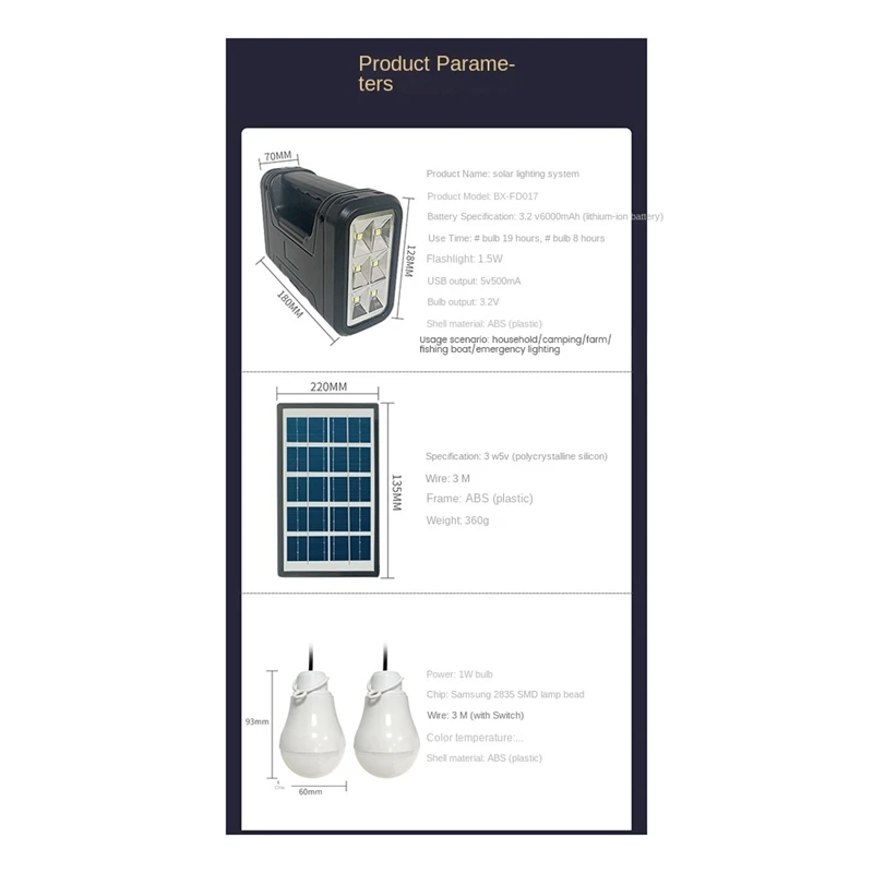 bWVCBfIFoBHere you can buy 1 Set Solar Panel Light 2 Bulb Set Flashlight Energy Saving Solar Light Outdoor Indoor Rechargeable LED Light with free delivery to your post office.