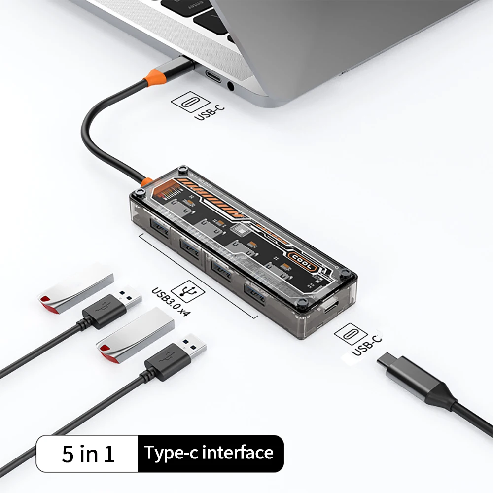 kVBMjaWHSyHere you can buy 1 Transparent Type-C Dock 5-in-1 USB Hub Multifunctional Notebook Dock Laptop Docking Stations Computer & Office with free delivery to your post office.