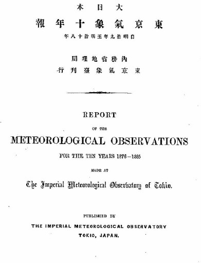 Выпущен первый в истории Японии прогноз погоды. Сотрудники Токийской метеорологической обсерватории трижды в день собирали информацию о погоде по всей стране, фиксировали её в погодных картах и на основании этих данных предполагали, как природа поведёт себя дальше. Первый прогноз звучал так: «По всей стране переменные ветры, погода неустойчивая, дожди» 全国一般風ノ向キハ定リナシ天気ハ変リ易シ 但シ雨天勝チ (яп. дзэнкоку иппан кадзэ но муки ва садамари наси тэнки ва кавари ёси тадаси утэн кати). Поскольку работа велась под руководством иностранных специалистов, в частности, прусского метеоролога Эрвина Книппинга, обучившего японцев методам анализа погодных условий и процессу составления климатических карт, то и текст был переводом прогноза, написанного по-английски. До населения информация доносилась через объявления, вывешивавшиеся на досках рядом с полицейскими участками. Позже прогнозы погоды станут печатать в газетах, но в годы Второй мировой войны они исчезнут со страниц прессы как стратегически важная информация, которая может представлять интерес для противника. Их публикация возобновится лишь 23 августа 1945 года.