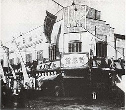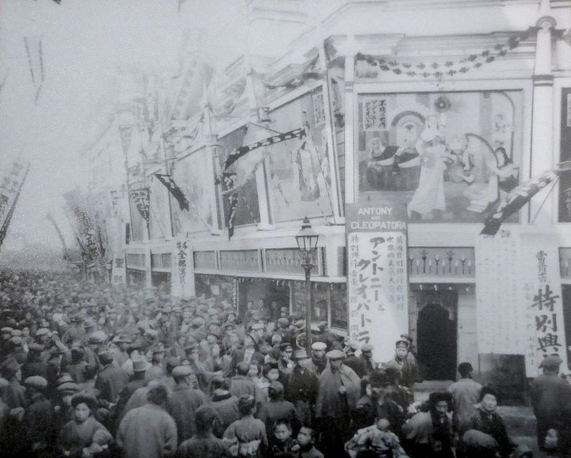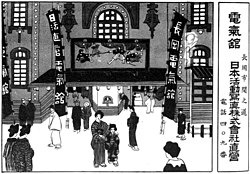 В квартале Рокку токийского района Асакуса, в заведении под названием «Дэнкикан» 電気館 («Павильон электричества») начал свою работу первый японский стационарный кинотеатр. «Дэнкикан» к этому времени существовал уже почти два года, однако специализировался не на показе «движущихся картинок», а демонстрации завораживающих и диковинных научных достижений, например, опытов с электричеством или рентгеновскими лучами. Кино в Токио можно было посмотреть или в специально арендованных под демонстрации помещениях, или на сцене театров в районах Гиндза или Канда, но заведения, специализирующегося исключительно на кинопоказах, до перепрофилирования «Дэнкикан», в Японии не существовало. Лавры первопроходца в этой области достались компании «Ёсидзава сётэн» 吉沢商店, одной из старейших японских киностудий. Первые посетители кинотеатра, рассчитанного на 240 зрителей, отмечали относительно невысокую цену на входной билет, однако радость омрачалась ужасным интерьером, грязным полом и неудобными шатающимися деревянными лавками для сидения. Все недостатки перекрывались самим зрелищем, привлекавшим толпы любопытных горожан, и через несколько лет заведения с таким же названием появились по всей Японии.