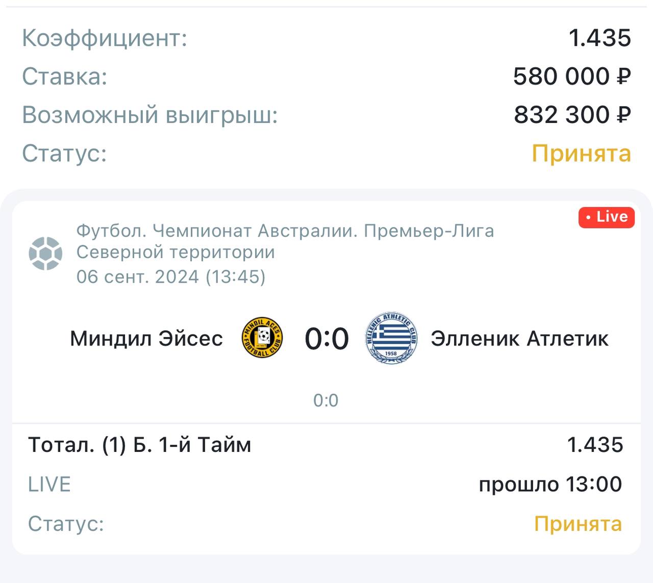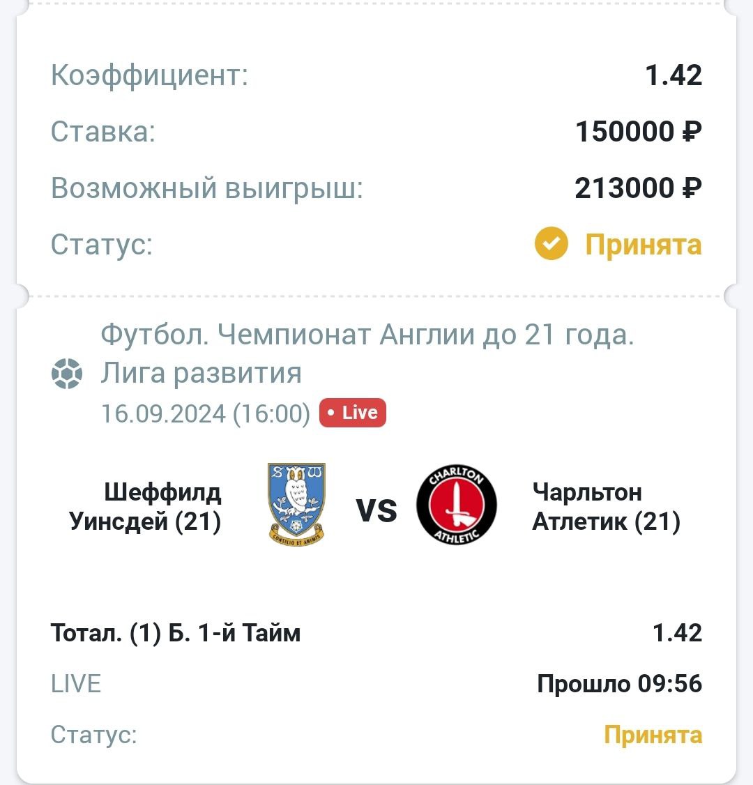 1 тайм больше 2