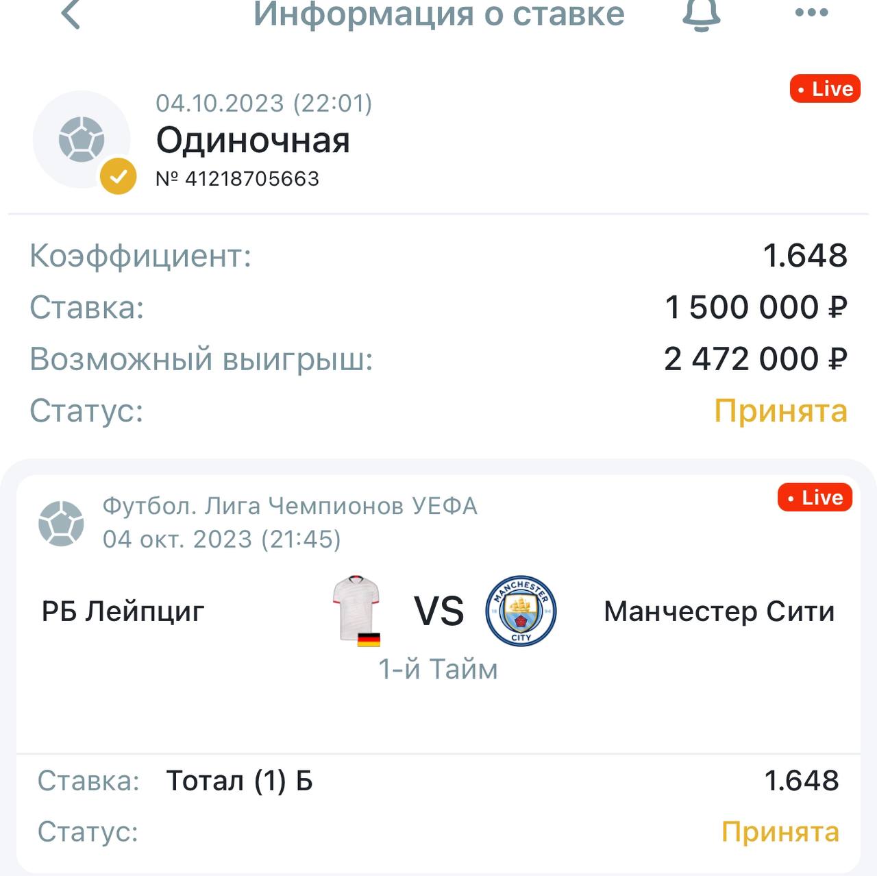 1 тайм закончился