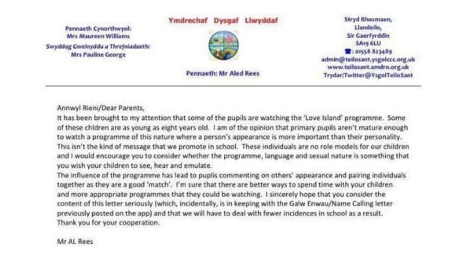 1 the headmaster sent a letter