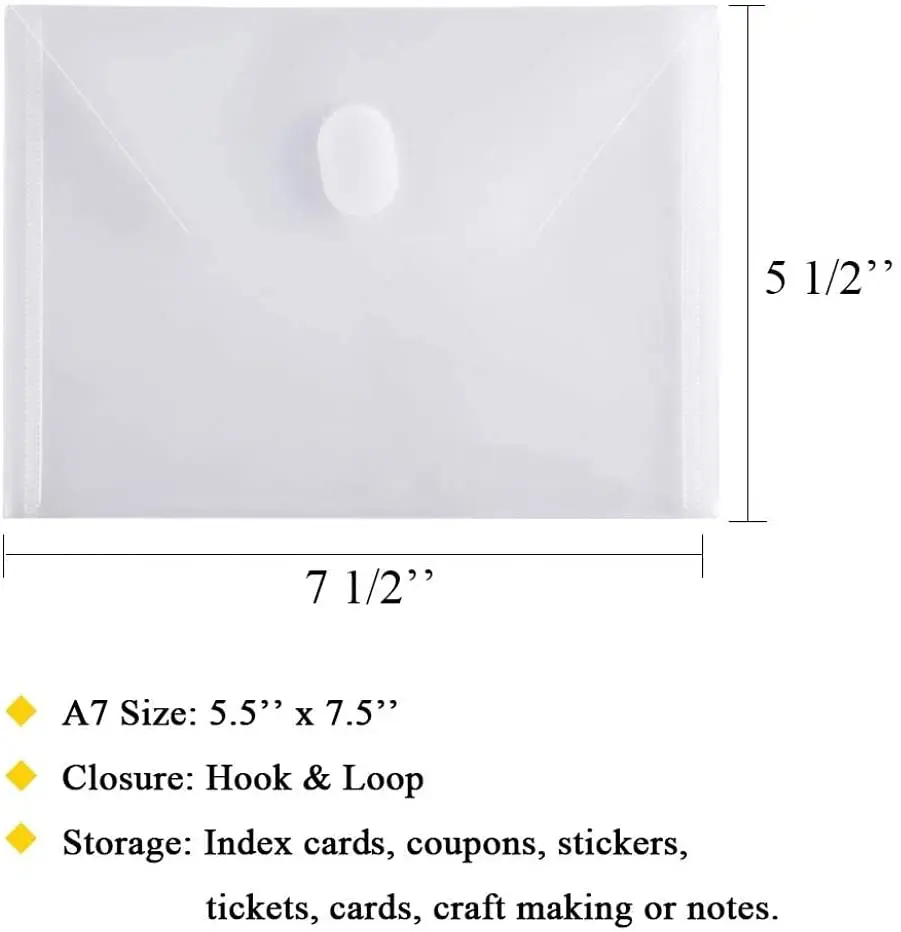 DQiVpwiWnJЗдесь вы сможете купить 10 Packs A7 Size Assorted Color Small Plastic Envelopes with Hook & Loop Closure Plastic Filing Envelopes for Index Card Coupons с бесплатной доставкой до вашего почтового отделения.