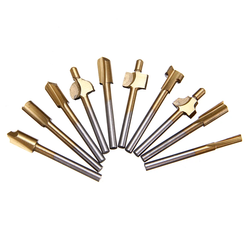 «10 Pcs High Quality Rotary Tool Sets 1/8" 3mm Mini Shank Wood Router Bits Milling Cutter Rotary Tool Set HSS Router Drill Bits» по лучшей цене на рынке! Всего за 9$ (855рублей)