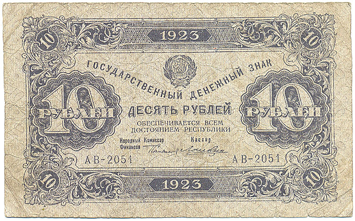 Первыми денежными знаками СССР стали банкноты номиналом в 10 , 15 и 25 тысяч рублей, выпущенные согласно постановлениям ЦИК и СНК СССР от 23 ноября и 18 декабря 1923 и от 7 февраля 1924 года . . .