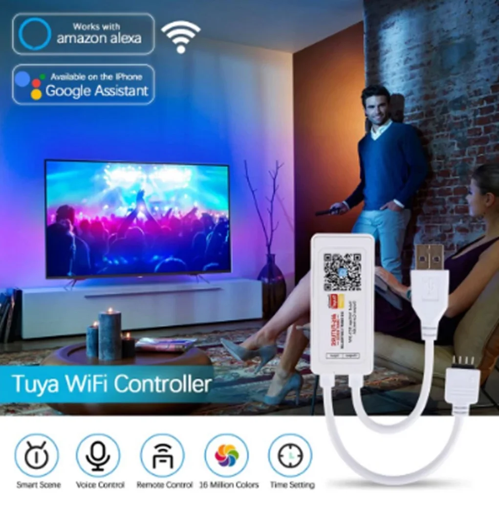 "10 Tuya DC5-24V Smart WiFi 2.4G RGB LED Controller Alexa Google Voice iOS Android APP Control DC USB Interface For SM5050 Strips" * Buy Now With Free Shipping Just For $35
