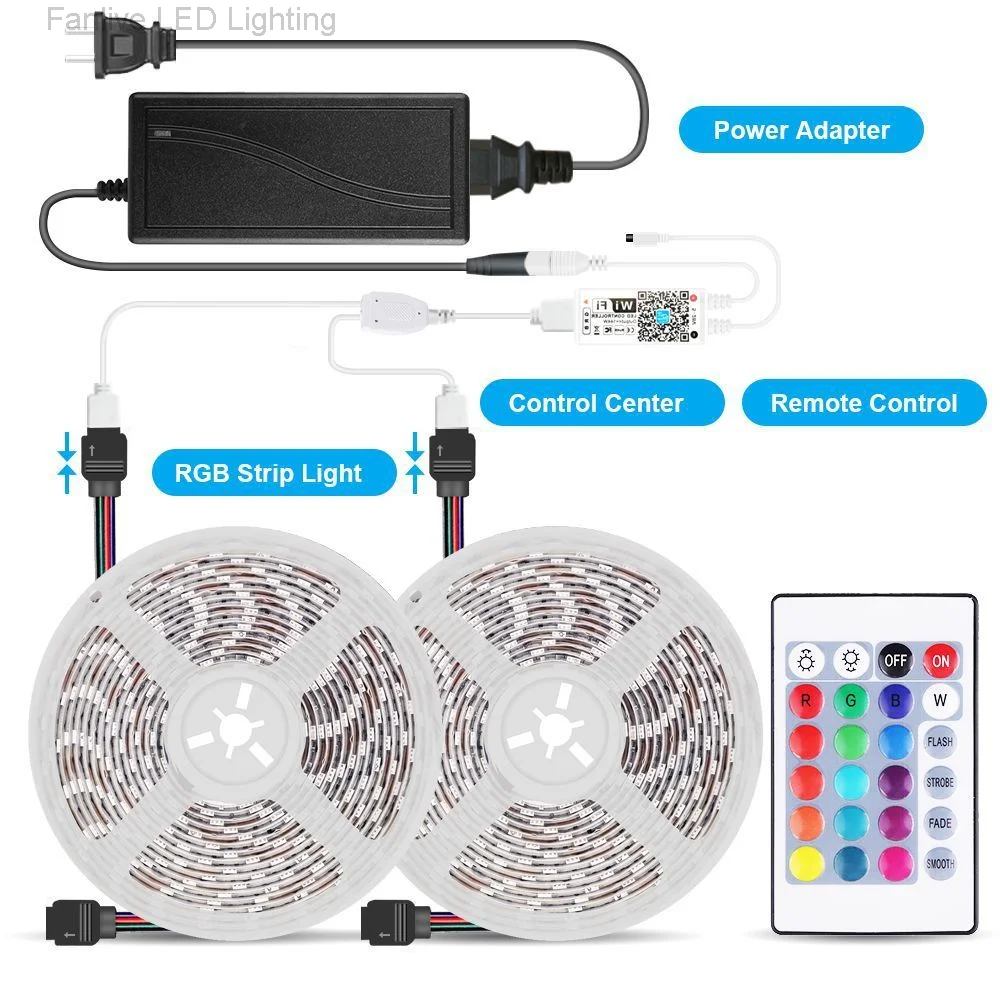 10 sets WiFi LED Strip Light RGB Tape String light 12V SMD5050 300LED 5M Flexible Light String With WiFI Controller adapter - Купить с бесплатной доставкой