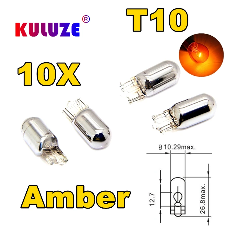 «10 шт. W5W T10 158/194 хромированные лампы янтарного цвета 12 В 5 Вт Сменные лампы для номерного знака s 3-й стоп-сигнал Лампа для парковки» по лучшей цене на рынке! Всего за 17$ (1615рублей)