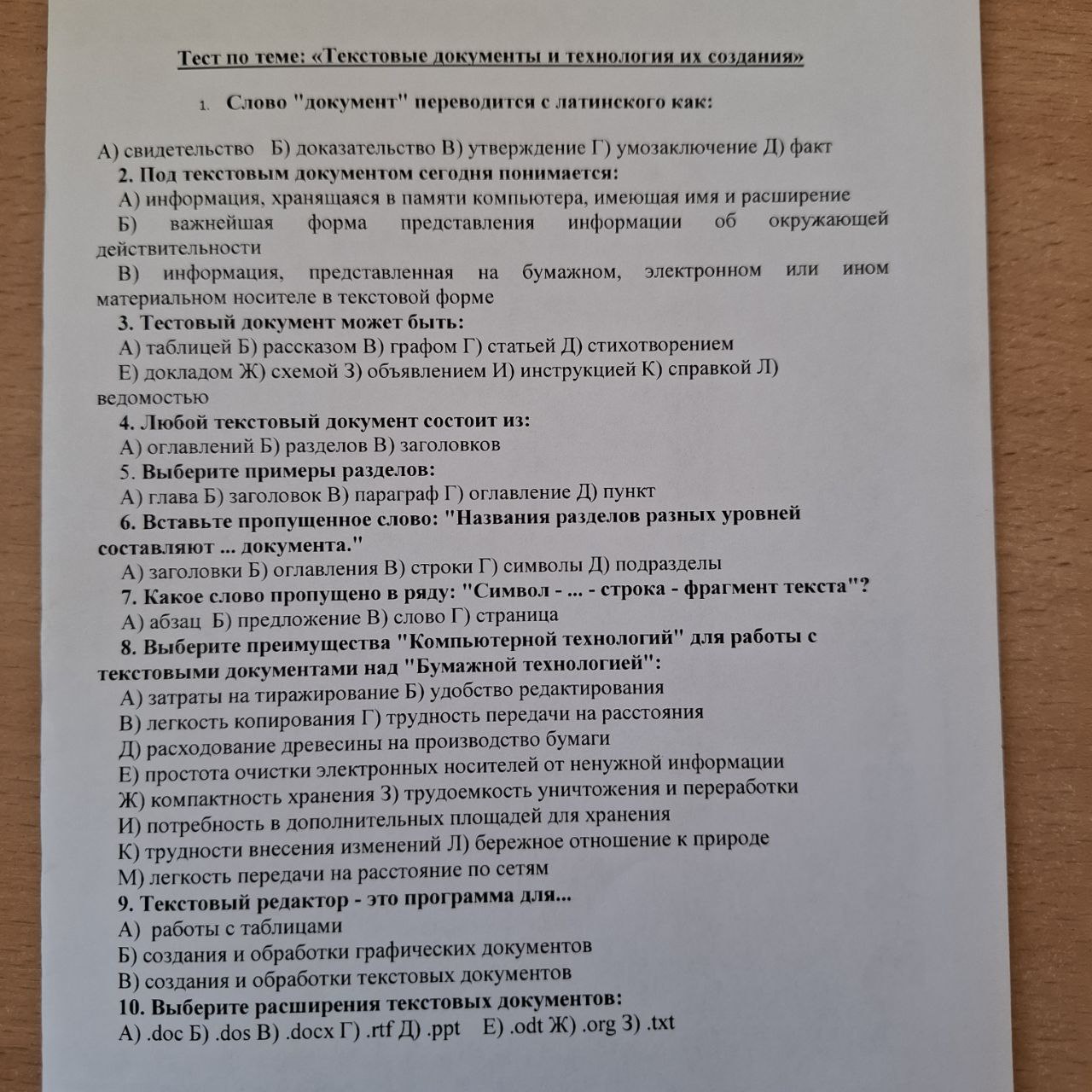 10 тест текстовые документы
