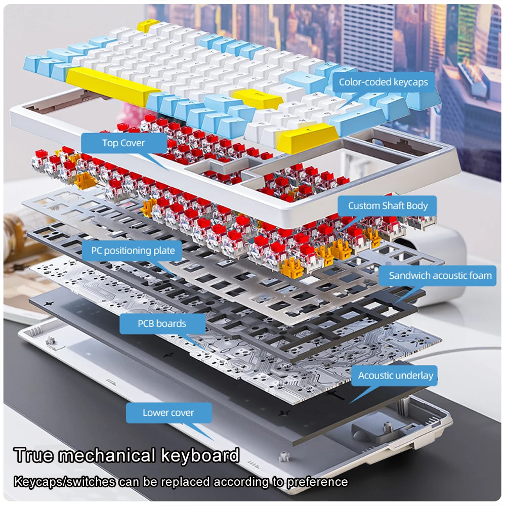 100 Keys Hot-plug Mechanical Wired Gaming Office Keyboard With Red/Blue Shaft 19 Lighting Effects Multi-system Compatibility - Купить с бесплатной доставкой