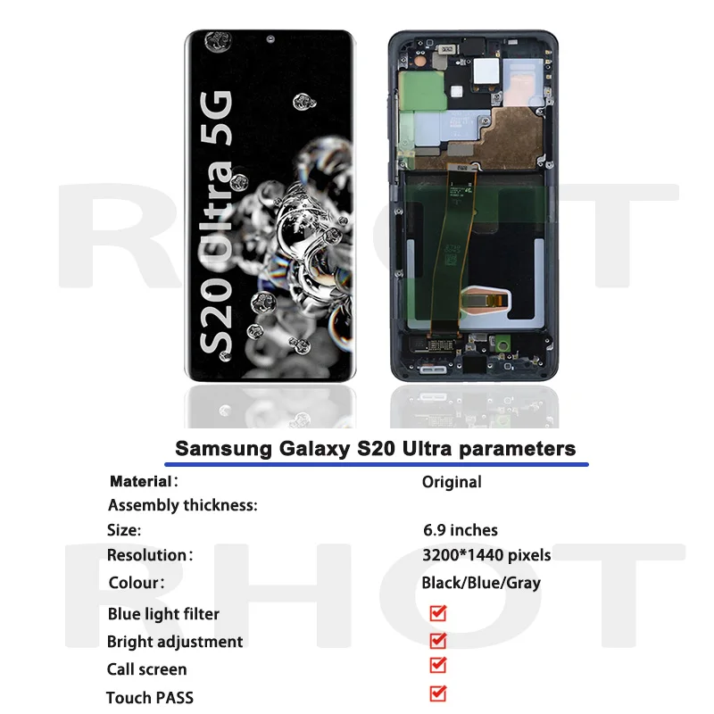 qeierMEqiALooked for 100% Original Super AMOLED 6.9" LCD Display for SAMSUNG Galaxy S20 Ultra G988 G988F LCD Display Touch Screen Digitizer Assembly for a long time, but could not find it? Bring to your attention 100% Original Super AMOLED 6.9" LCD Display for SAMSUNG Galaxy S20 Ultra G988 G988F LCD Display Touch Screen Digitizer Assembly with the best price!