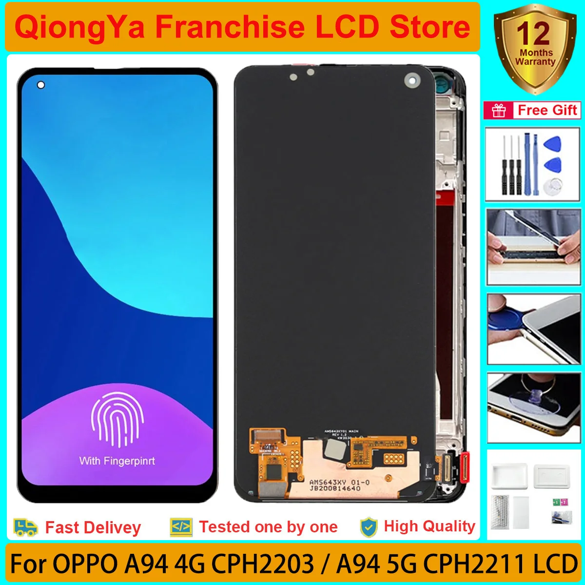 tWBCffScHere you can buy 100% Tested 6.43" Original a94 Display For OPPO A94 5G CPH2211 With Fingerprint Tested LCD and Touch Screen Digitizer Assembly with free delivery to your post office.