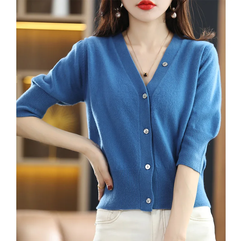 mSHULuezabДолго искали 100% Wool Sweater Women's V-Neck Cardigan Loose Knit Bottom Sweater Spring And Autumn New Button Half Sleeve Cashmere Short Top, но не могли найти? Предоставляем вашему вниманию 100% Wool Sweater Women's V-Neck Cardigan Loose Knit Bottom Sweater Spring And Autumn New Button Half Sleeve Cashmere Short Top по лучшей цене на рынке!