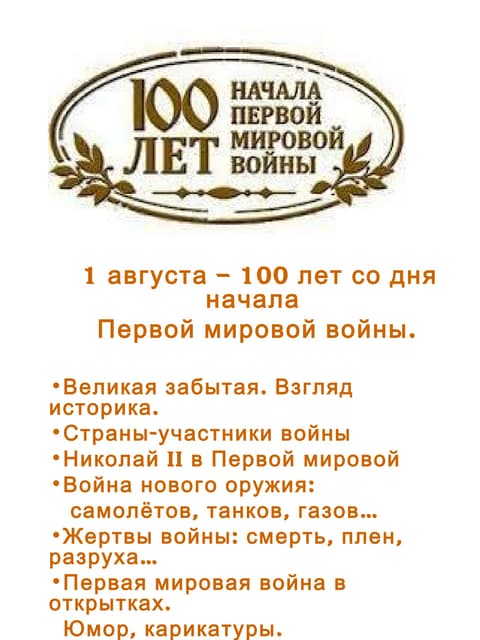 100 летие первой мировой
