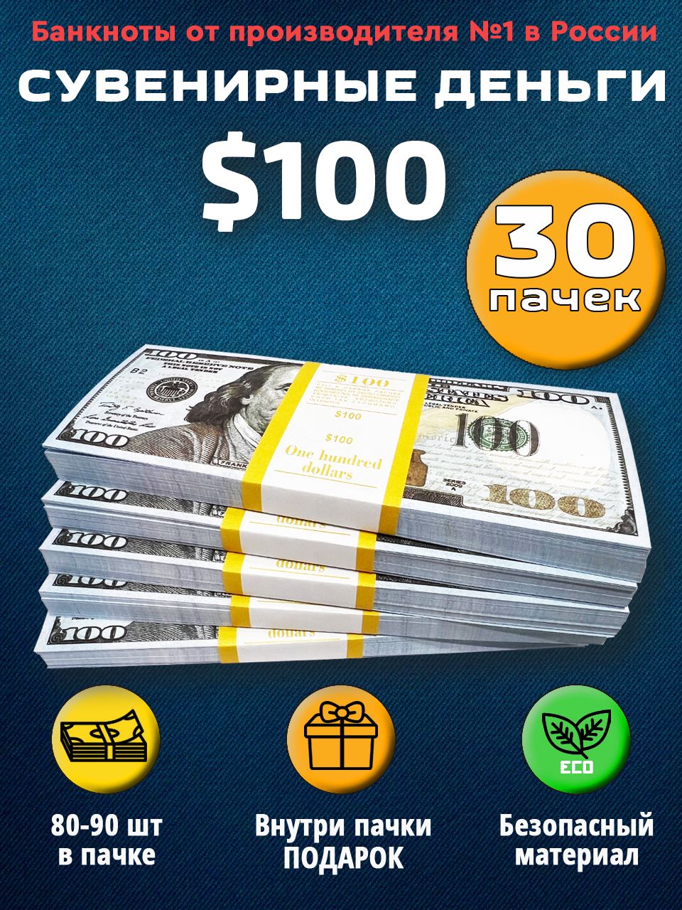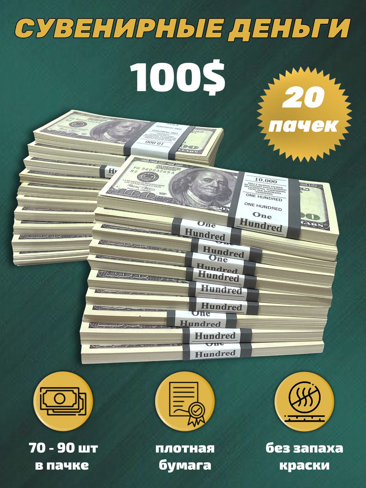 100 пачек денег 100 долларов
