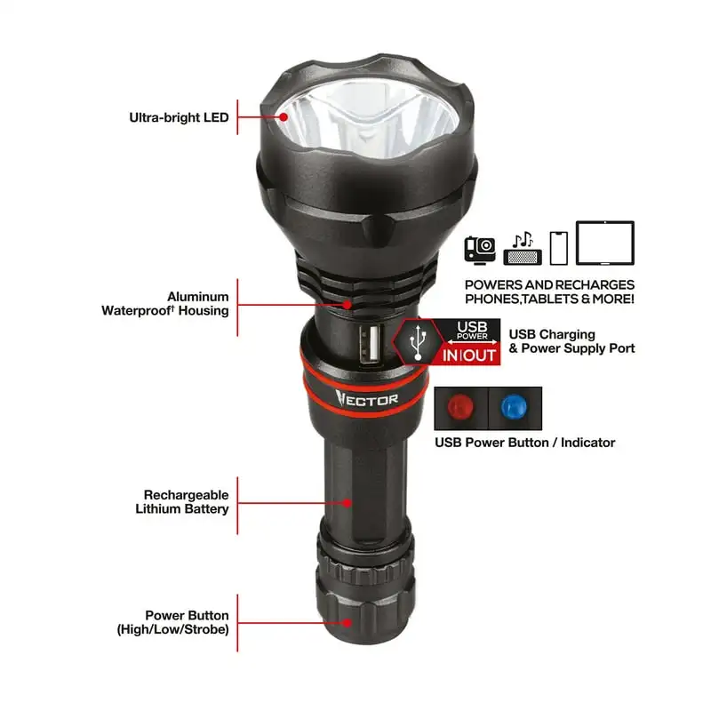 "1000 Lumen, LED, Rechargeable Flashlight with Power Bank Capability" * Buy Now With Free Shipping Just For $31