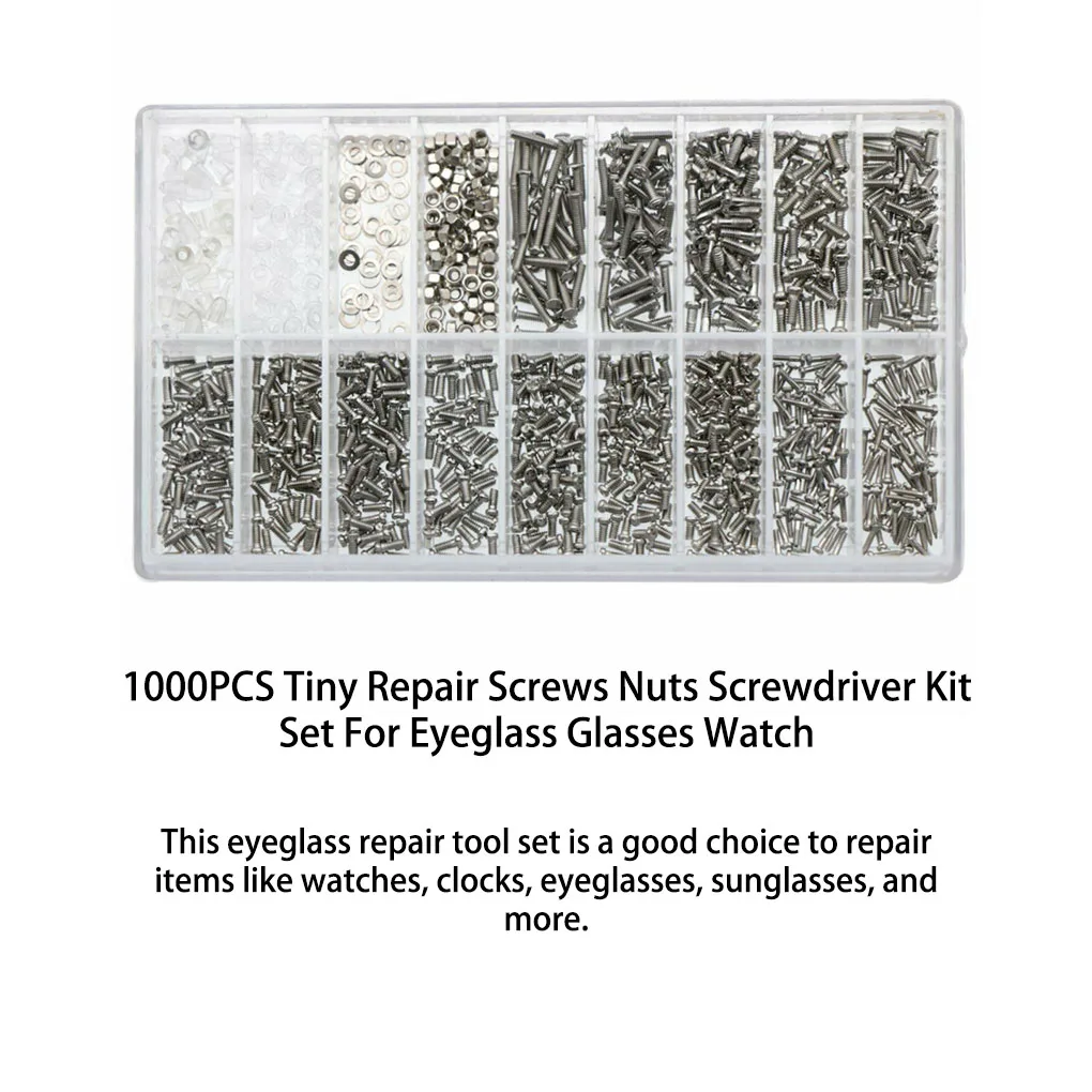 zhdQBmTKЗдесь вы сможете купить 1000 Pieces Set Eyeglass Screw Screwdriver Assortment Glasses Repair Assorted Kit Watchmaker Clockmaker Accessories с бесплатной доставкой до вашего почтового отделения.