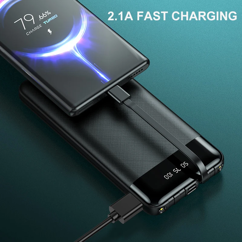 «10000mAh Portable Power Bank With USB TYPE-C Cable Double USB OUTPUT Flashlight For iPhone 12 11 Pro Max Samsung Xiaomi Power» по лучшей цене на рынке! Всего за 13$ (1235рублей)