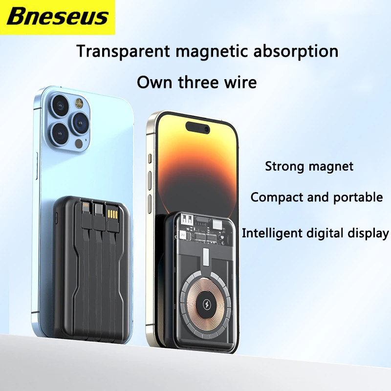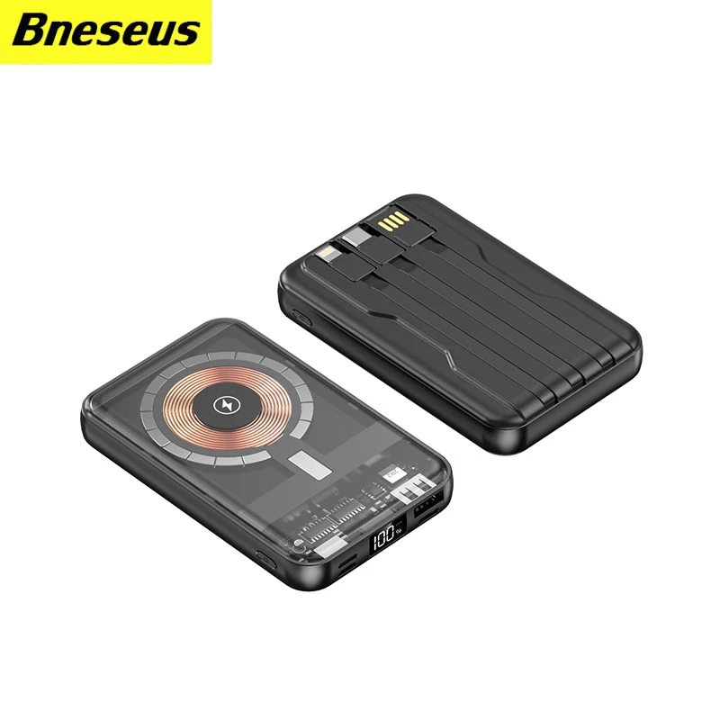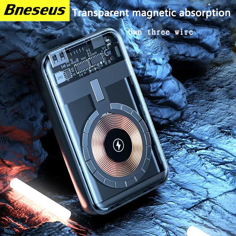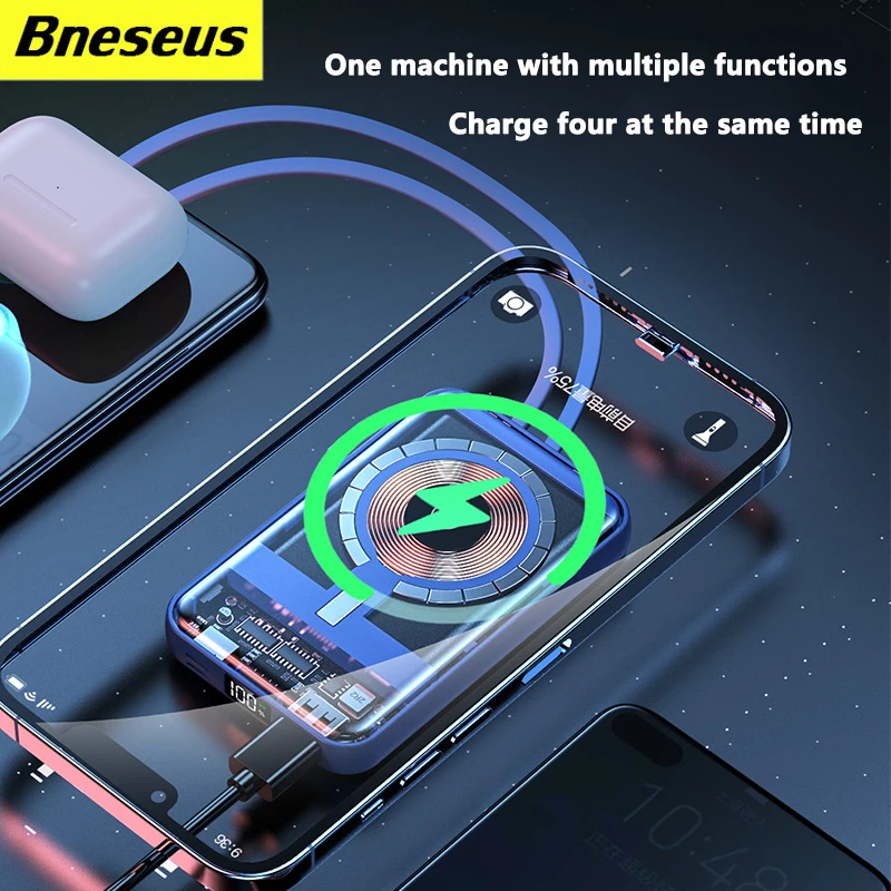 "10000mAh Wireless Magnetic Power Bank Fast Charging Digital Display External transparent Battery Built in Cables 3usb,For iPhone" * Buy Now With Free Shipping Just For $21