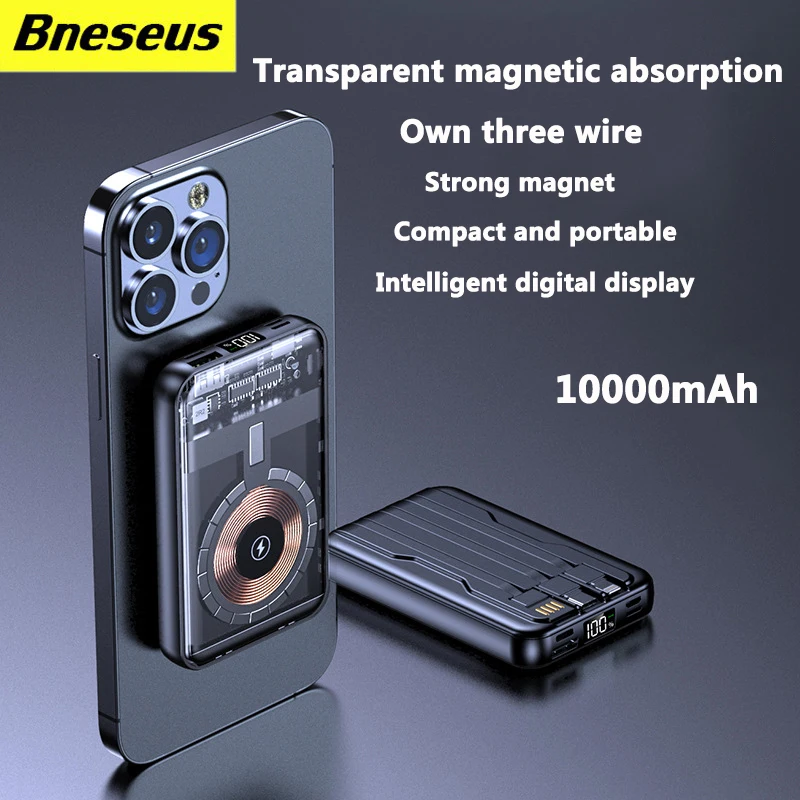 KKFmxnXNhhHere you can buy 10000mAh Wireless Magnetic Power Bank Fast Charging Digital Display External transparent Battery Built in Cables 3usb,For iPhone with free delivery to your post office.