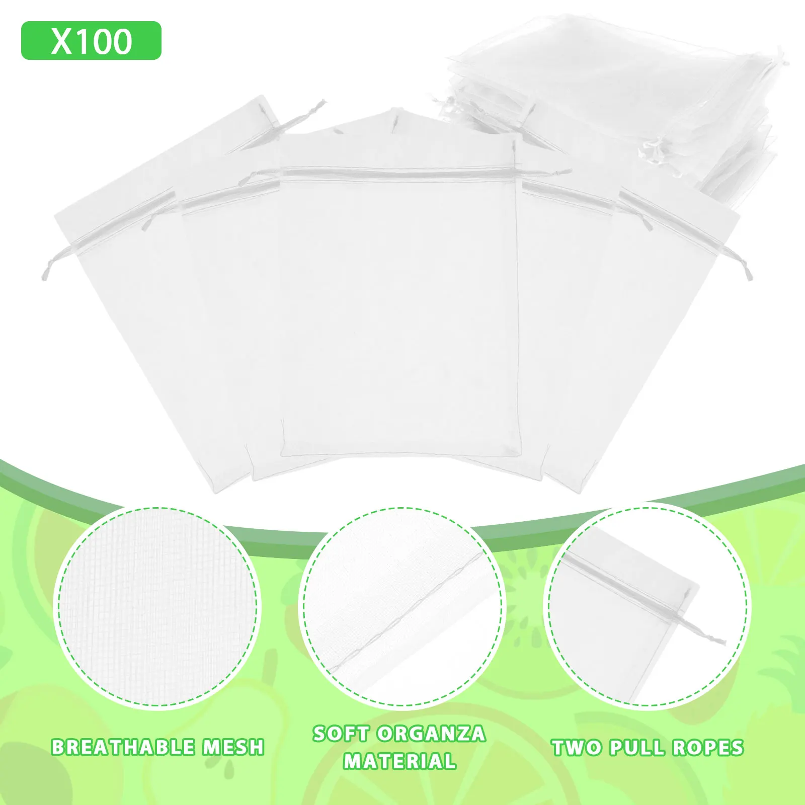 100Pcs Fruit Protection Bags Reusable Garden Netting Bags with Drawstring Breathable Fine Mesh Fruit Bag Multipurpose Fruit - Купить с бесплатной доставкой