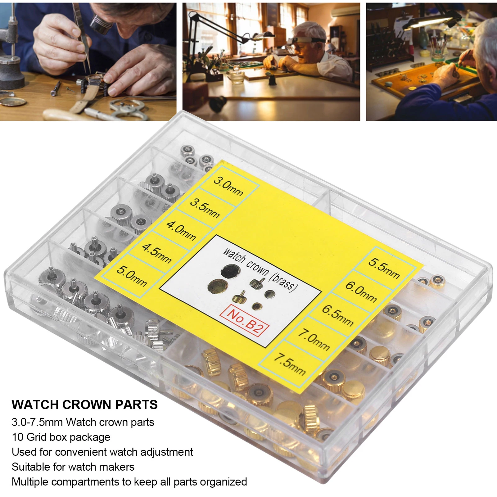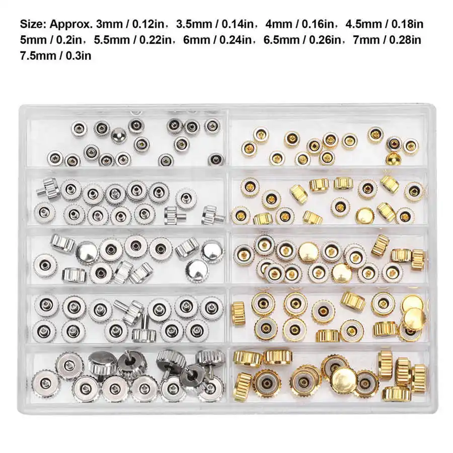 bxtLYFiuHere you can buy 100Pcs/Box Gold Silver Watch Crown Watch Head Assortment Part Replacement 3.0-7.5mm Alloy Watch Repair Accessory for Watchmakers with free delivery to your post office.