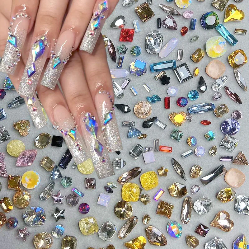 100Pcs/Lot Multi-Shapes Nail Rhinestones Shiny Glass Diamond Nail Crystals Colorful Nail Gems Rhinestones for Nails Decorations - Купить с бесплатной доставкой