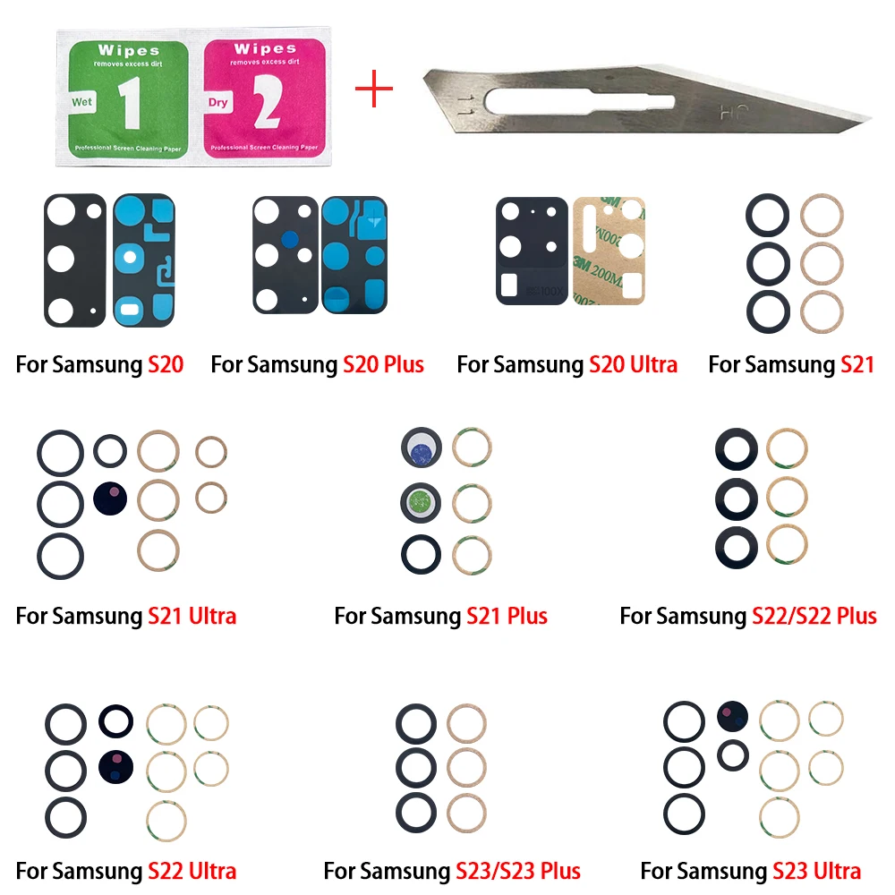 100Pcs/lots Original Rear Back Camera Glass Lens With Glue Sticker Adhesive + Tools For Samsung S23 S22 S20 Plus Ultra - Купить с бесплатной доставкой