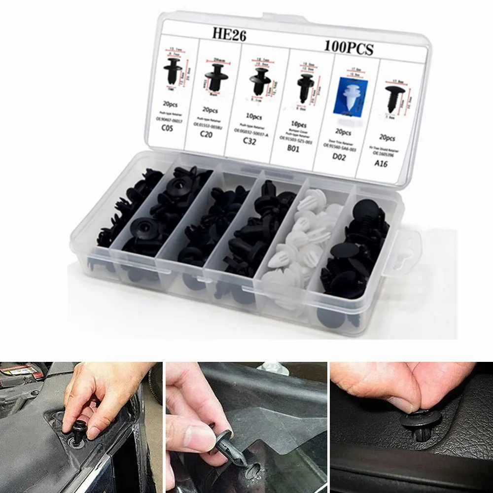 kfHREwlkeHere you can buy 100pcs Car Fastener Clip Kit Fender Rivet Clips Screw for Auto Retainer Pin Rivet Bumper Door Trim Panel Retainer Car Clips with free delivery to your post office.