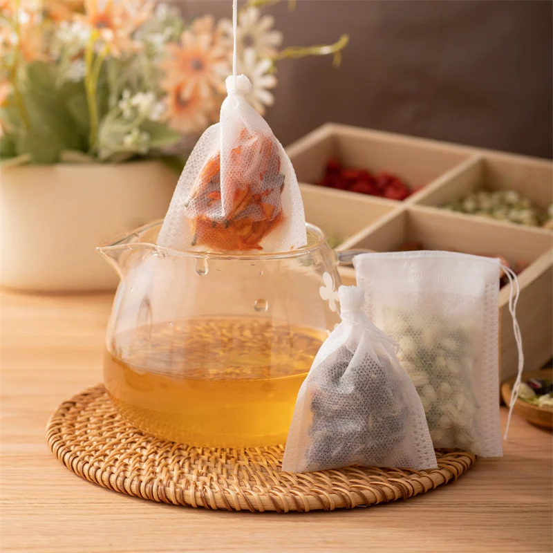 "100pcs Disposable Tea Bags Non-woven Fabric Tea Filter Bag Empty Pocket Drawstring Bag for Spice Tea Infuser Kitchen Accessories" * Buy Now With Free Shipping Just For $4